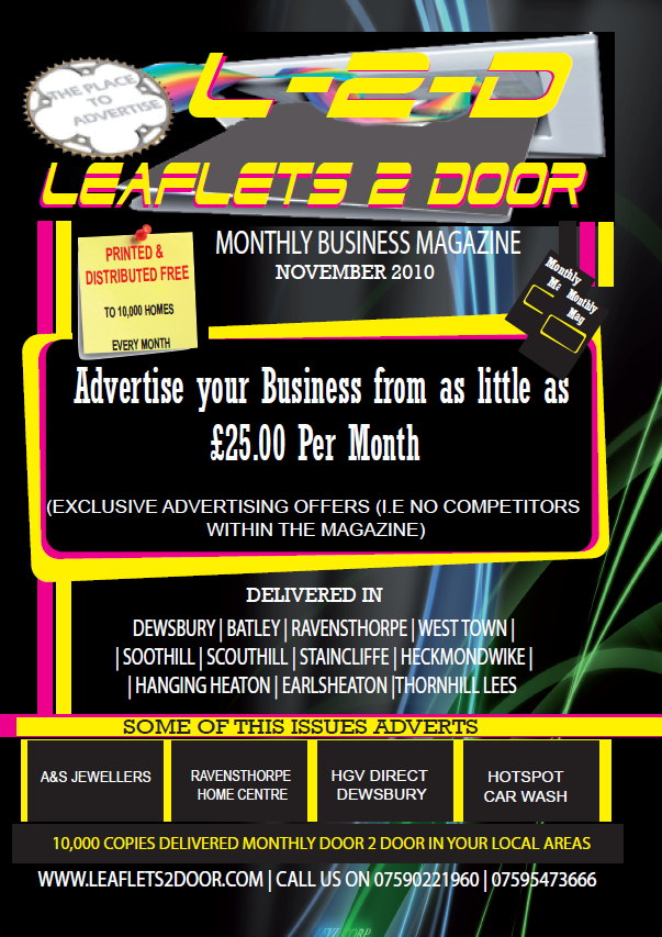 Delivered Monthly Door to Door to around 10,000 homes in and around Dewsbury and Batley.